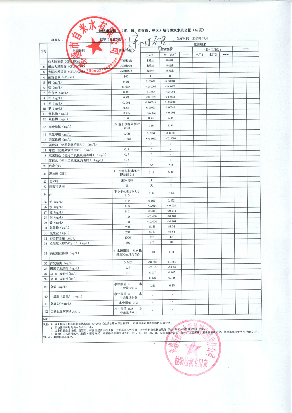 2023年3月水質(zhì)報(bào)告