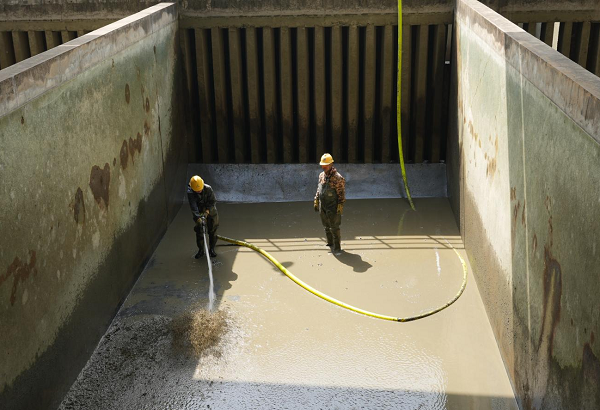 平流池作為水處理核心設(shè)施,長(zhǎng)期截留原水中的泥沙、藻類及重金屬顆粒。若未定期清理沉積物可能滋生微生物,甚至釋放二次污染物,池底淤積也會(huì)改變?cè)O(shè)計(jì)水流形態(tài),影響絮凝體沉降效率。此次清洗工作可恢復(fù)池體過水?dāng)嗝妫粌H能有效預(yù)防二次污染、減輕濾池負(fù)荷,還可降低水處理藥劑成本,助力水處理工藝穩(wěn)定運(yùn)行,保障優(yōu)質(zhì)的出廠水水質(zhì)。