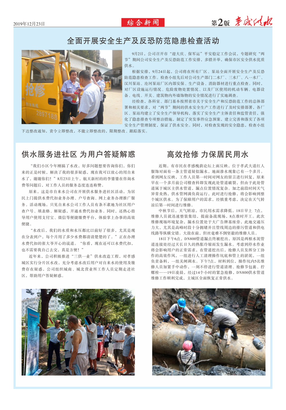 來(lái)源:孝感自來(lái)水 發(fā)布時(shí)間:2019/12/23 10:48:00