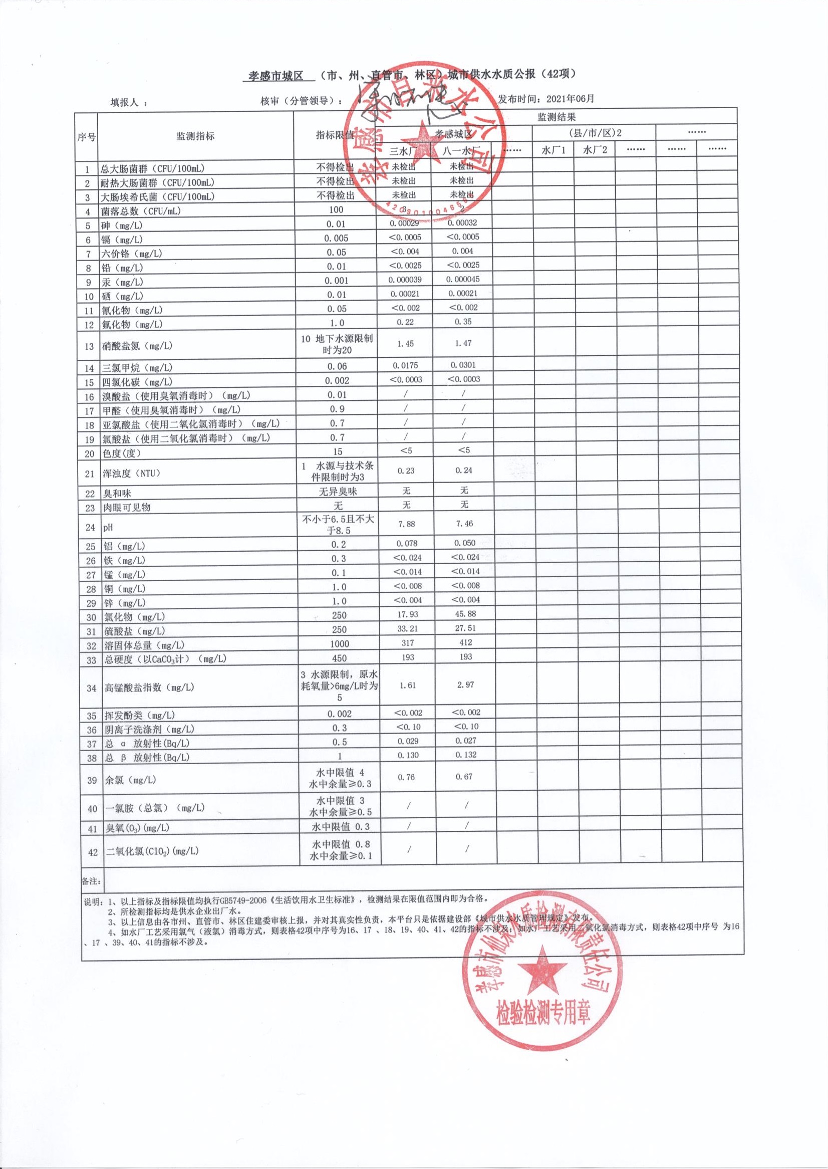 2021年6月水質(zhì)報告