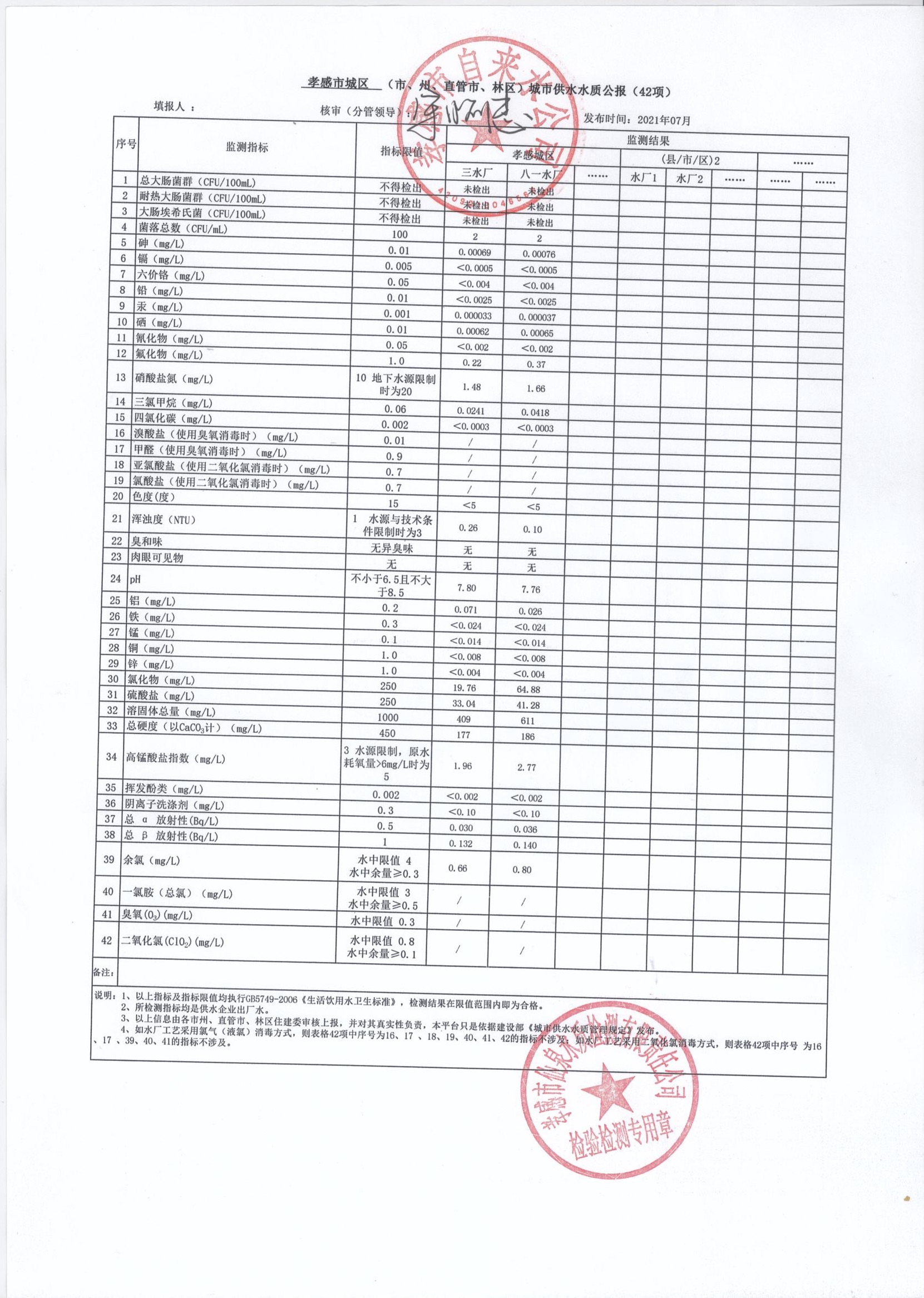 2021年7月水質報告
